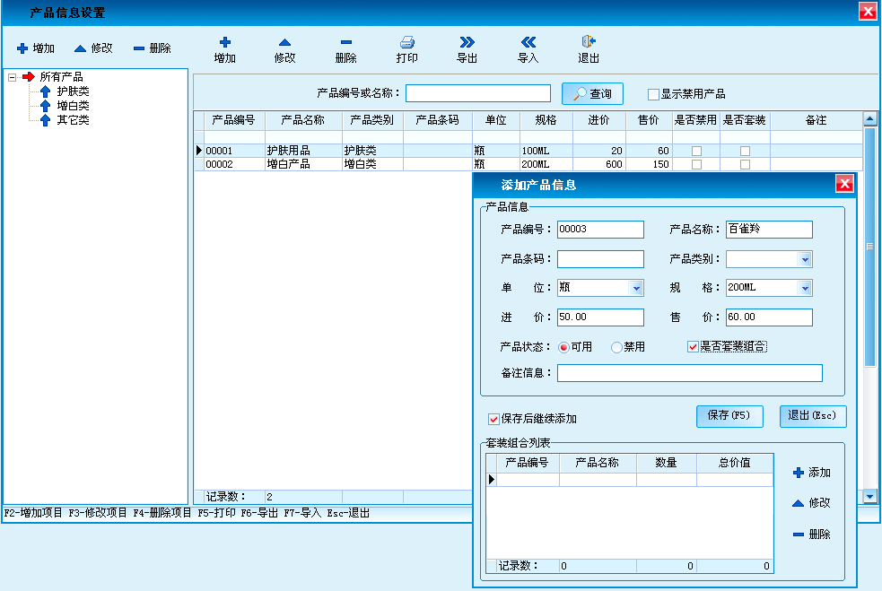 录入产品基本信息,可对产品进行分类,设置产品的基本信息、进货销售价格和产品的销售提成方案等。产品的增加、修改、删除、调价等操作。支持Excel电子表格导入和导出产品信息。