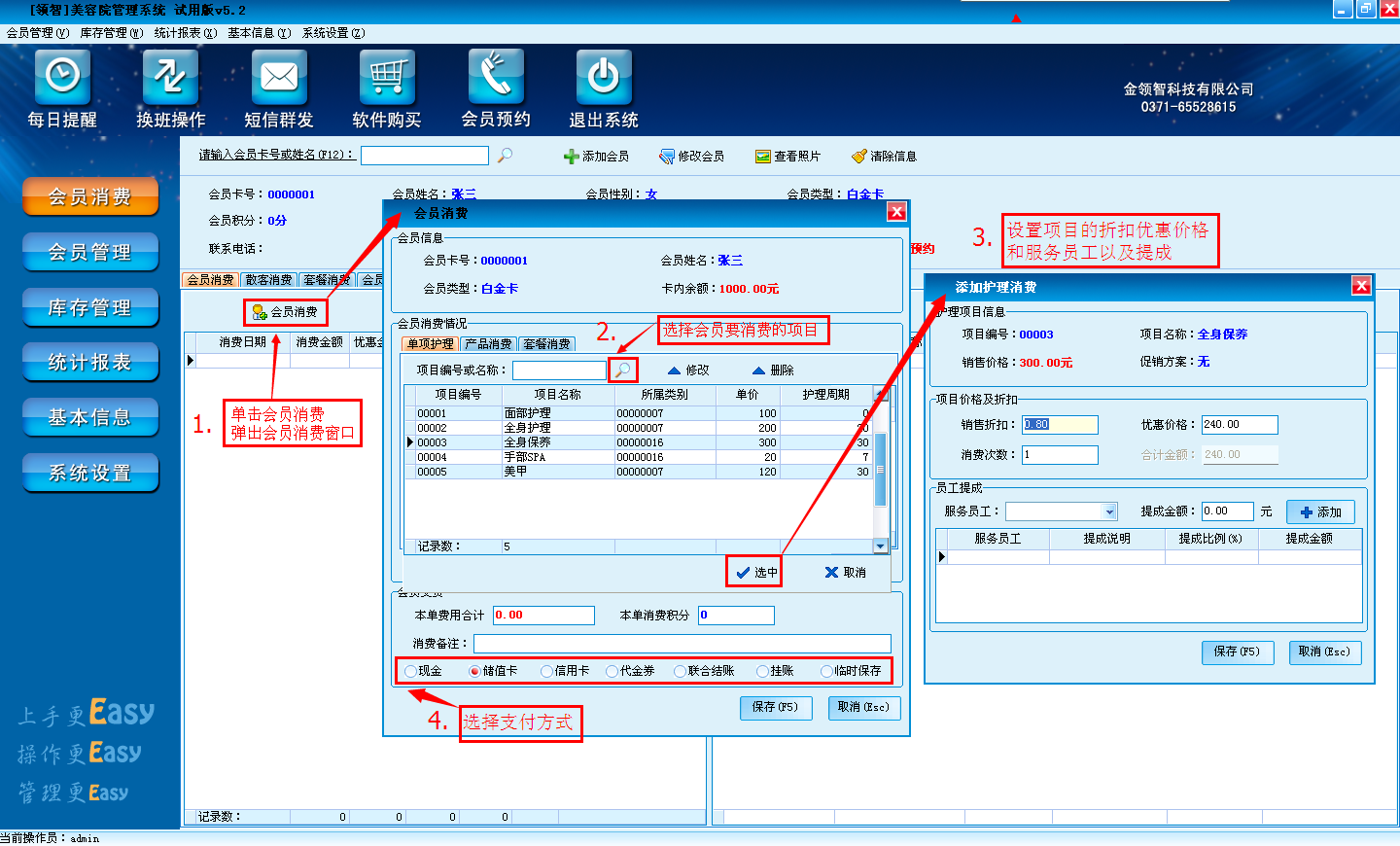 三、领智美容院管理软件其它常用功能