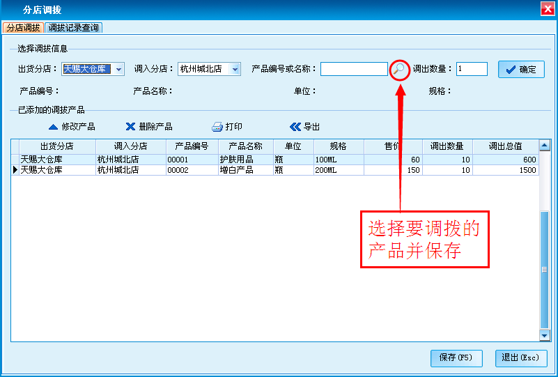 (8)分店调拨