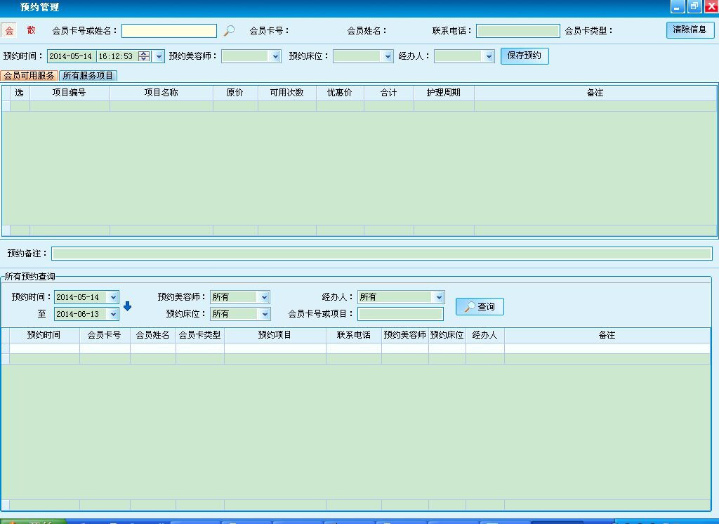 会员和散客进行服务项目的预约。