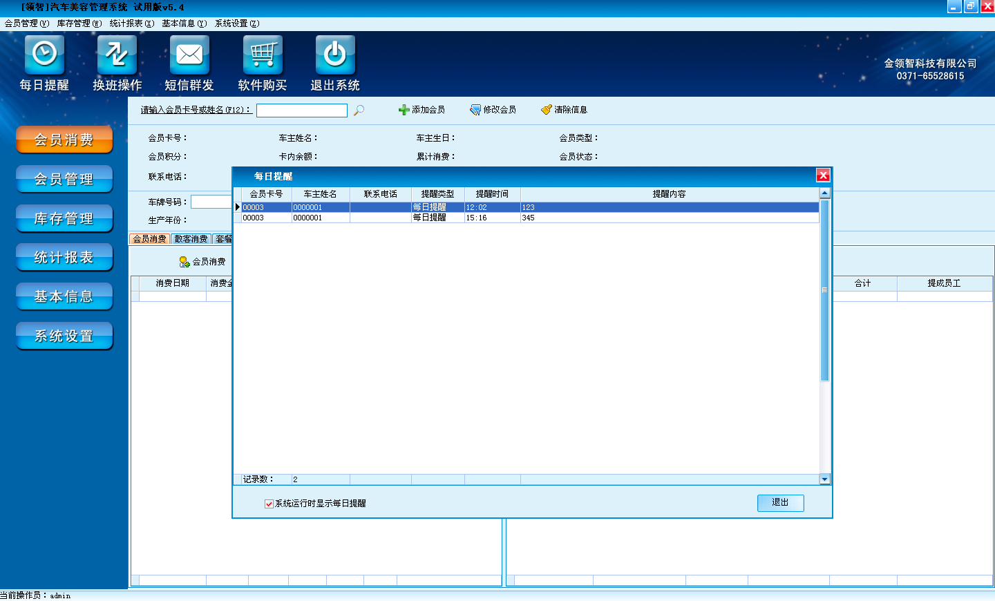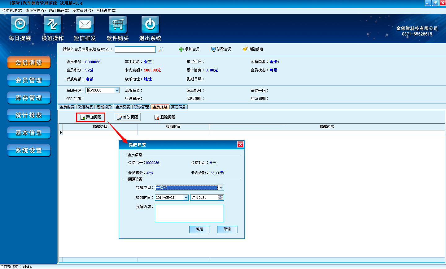 添加、修改、删除会员提醒。