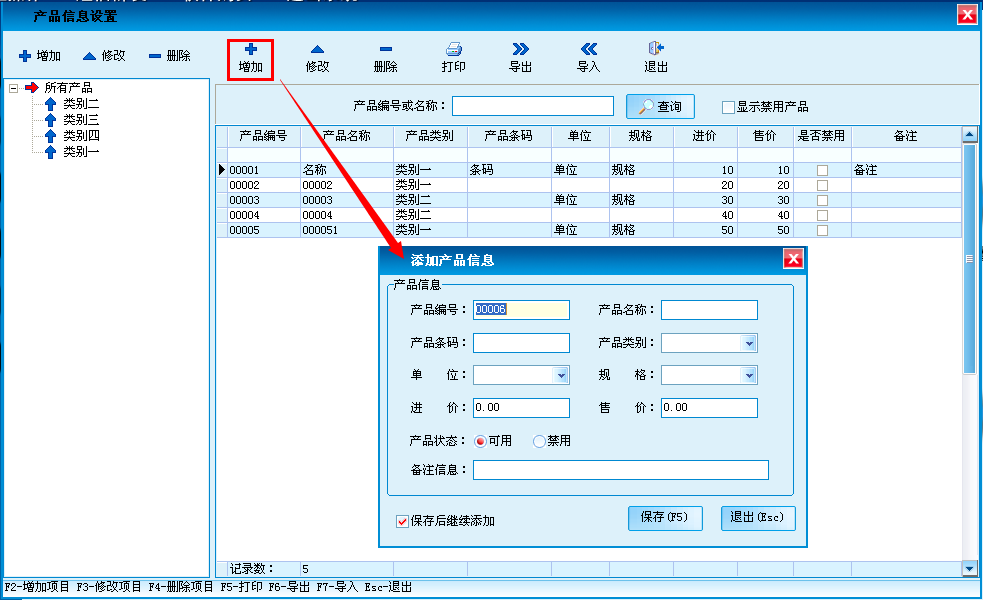 录入产品基本信息,可对产品进行分类,设置产品的基本信息、进货销售价格和产品的销售提成方案等。产品的增加、修改、删除、调价等操作。支持Excel电子表格导入和导出产品信息。