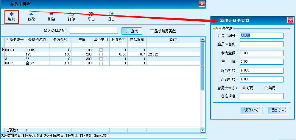 (4)会员卡类型