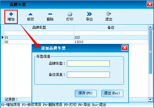 用于添加、修改、删除车型的基本信息。支持Excel电子表格导出。