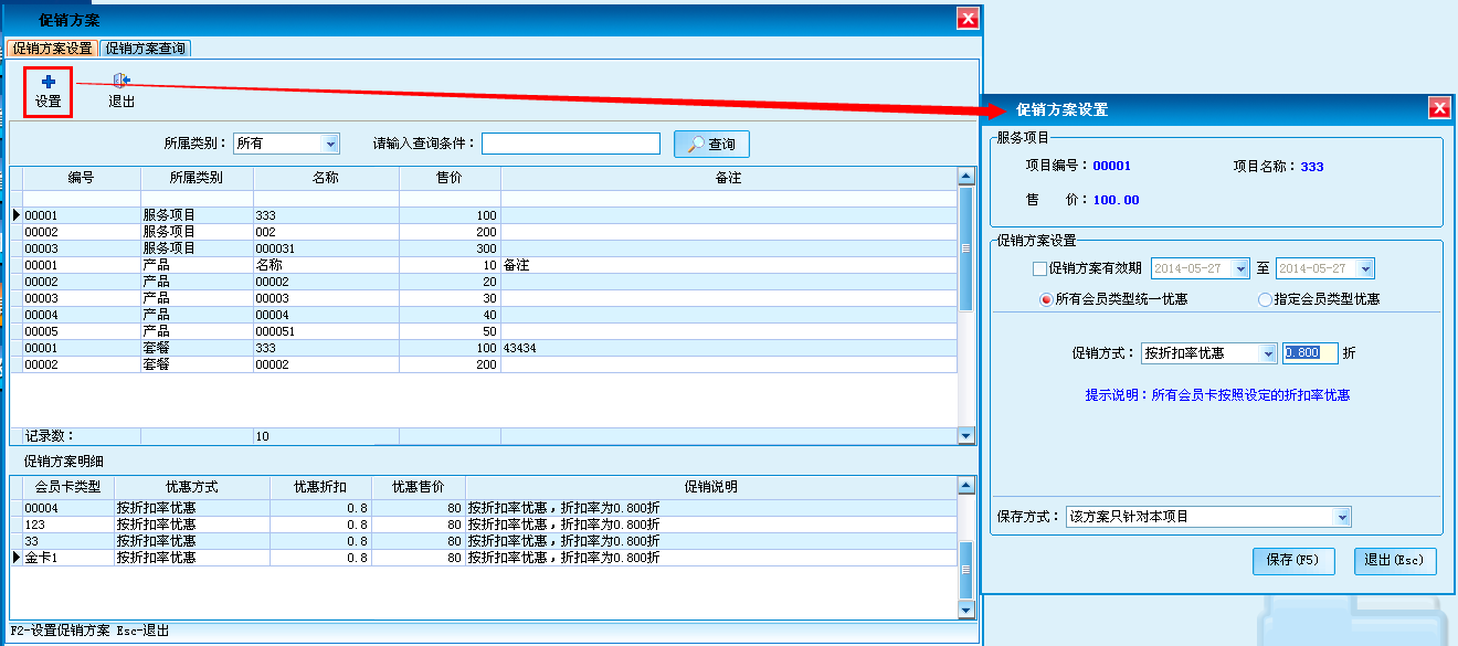 针对顾客类型对商品促销方案的设置和查询,可对促销的有效期、会员的类型、促销方式以及保存方式进行设置。