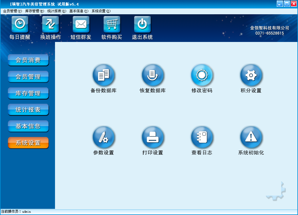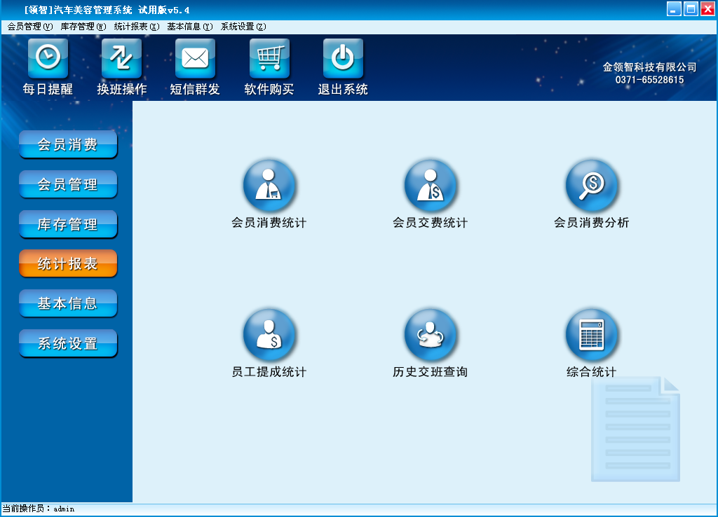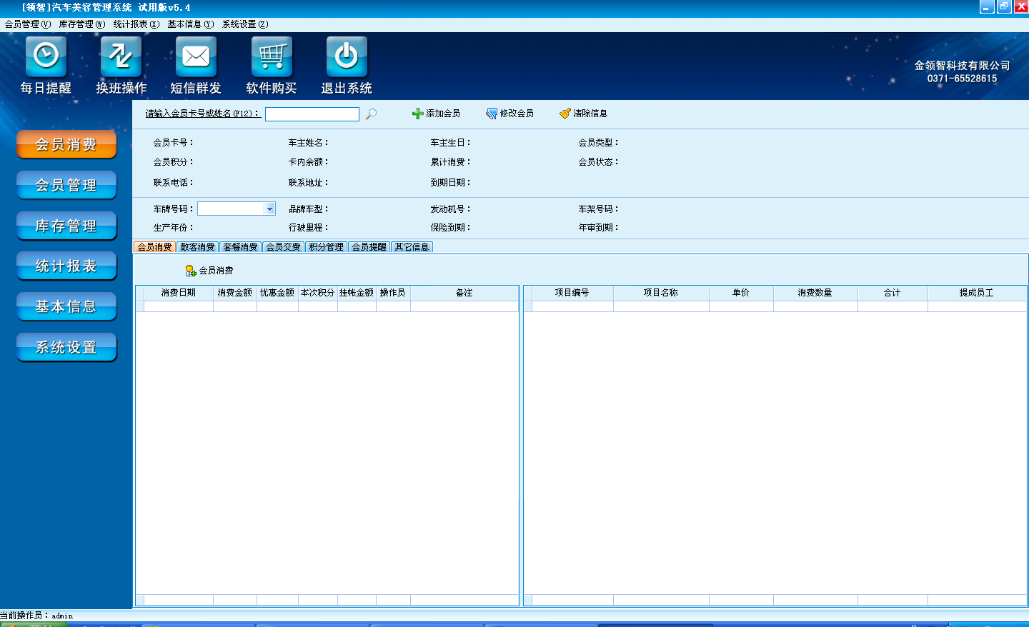 一、领智汽车美容管理软件主界面