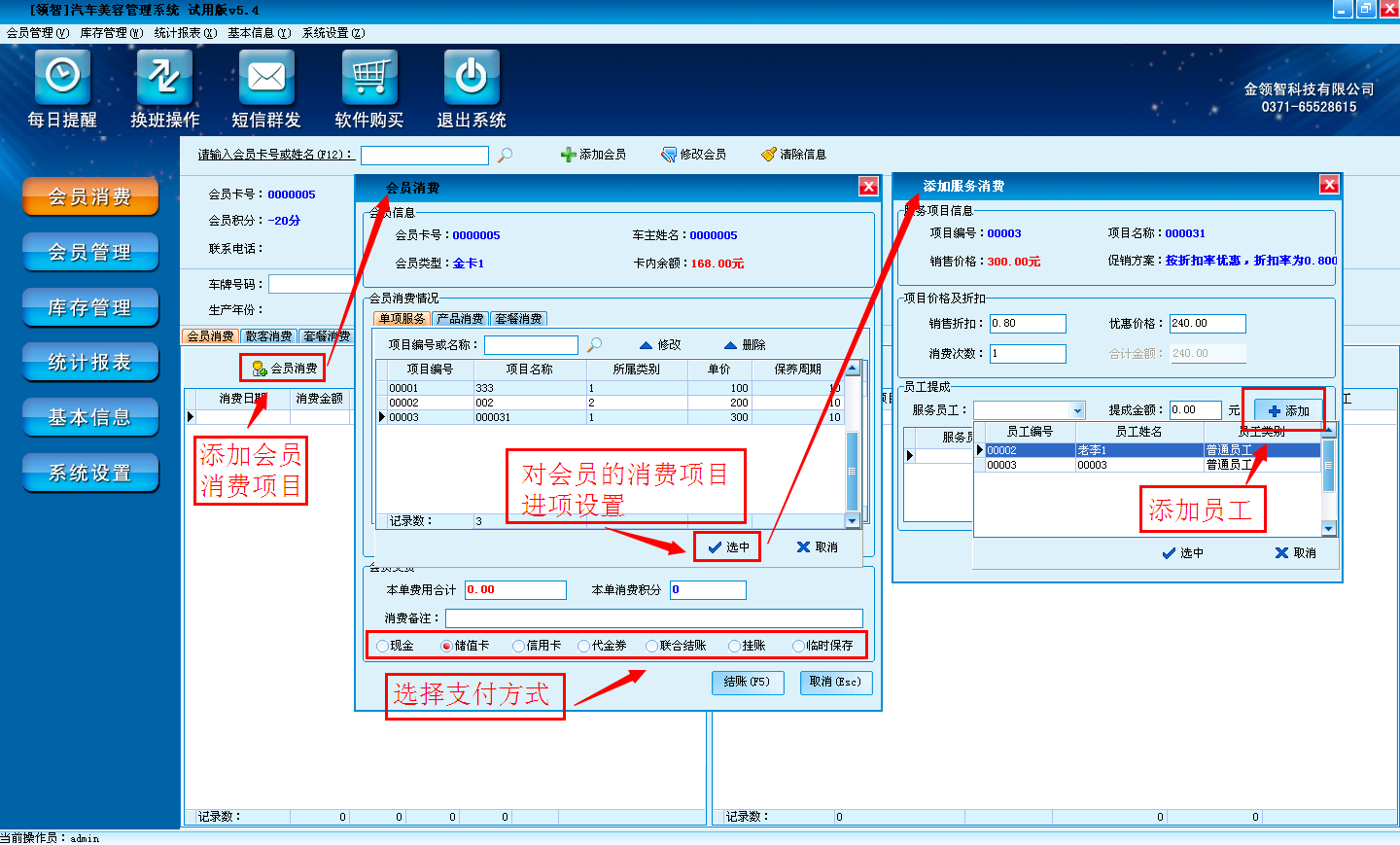 三、领智汽车美容管理软件其它常用功能
