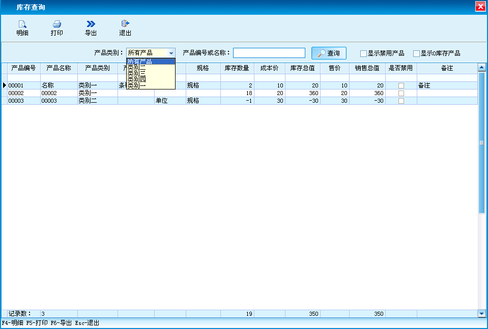 对产品的库存进行查询,支持打印和导出的功能。