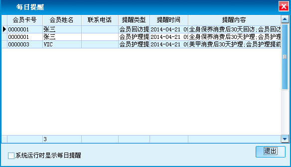 (3)会员提醒