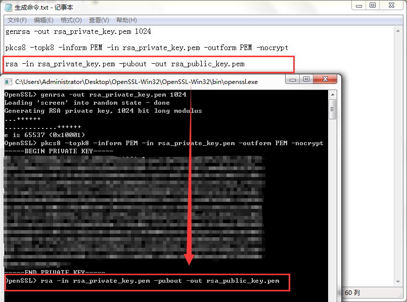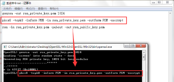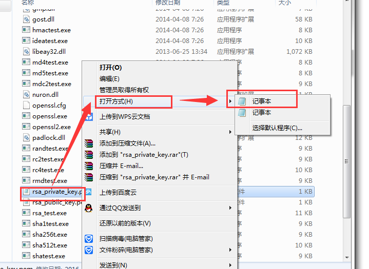 选中“rsa_private_key.pem”文件,点鼠标右键,用记事本方式打开。