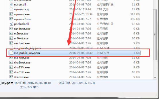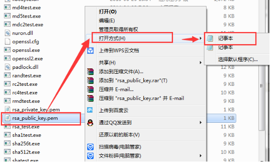 选中“rsa_public_key.pem”文件,点鼠标右键,用记事本方式打开。
