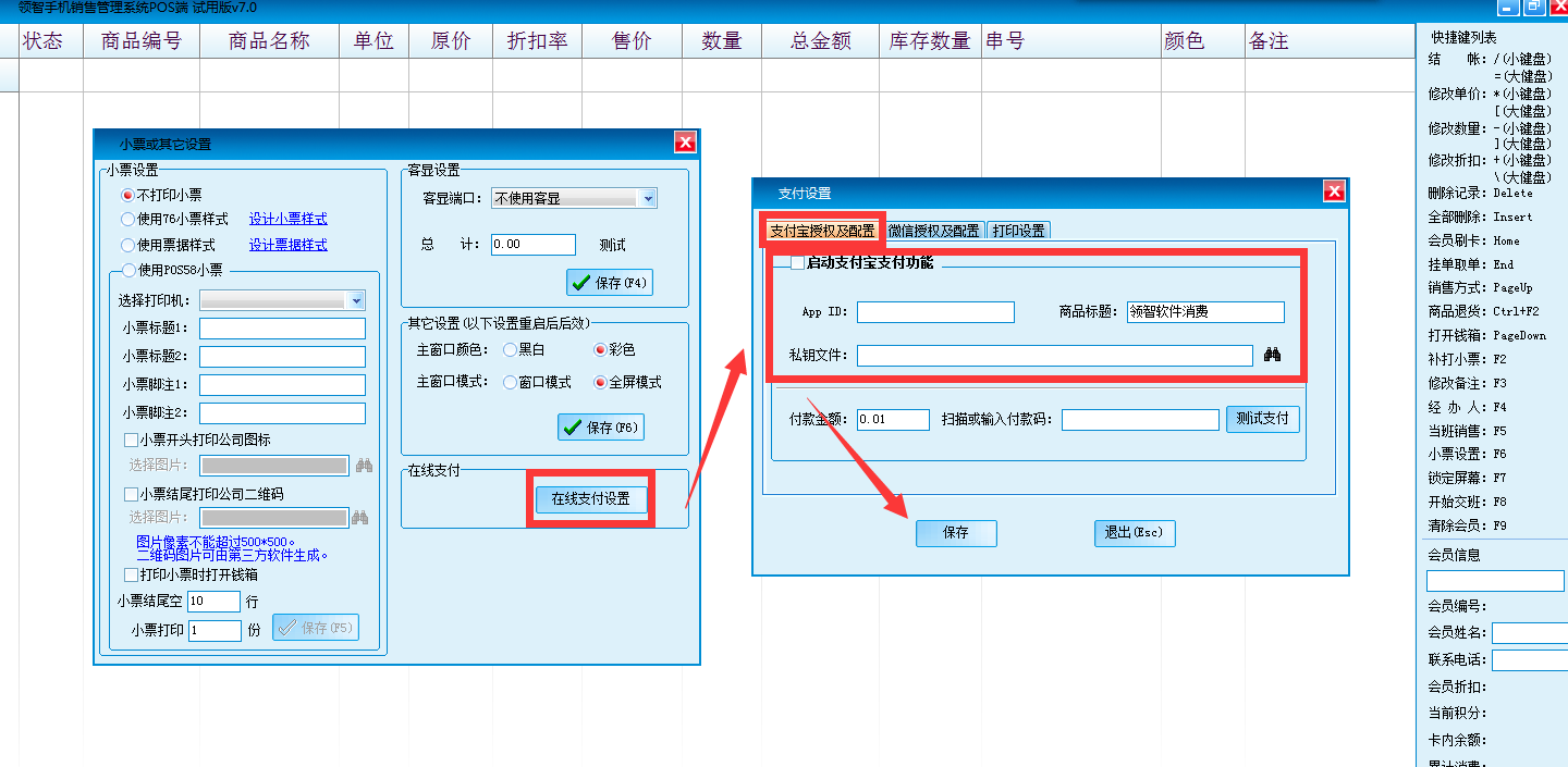 打开领智软件POS端销售界面,按F6,输入APP ID,点击望远镜图标,选择“rsa_private_key.pem”文件,保存。