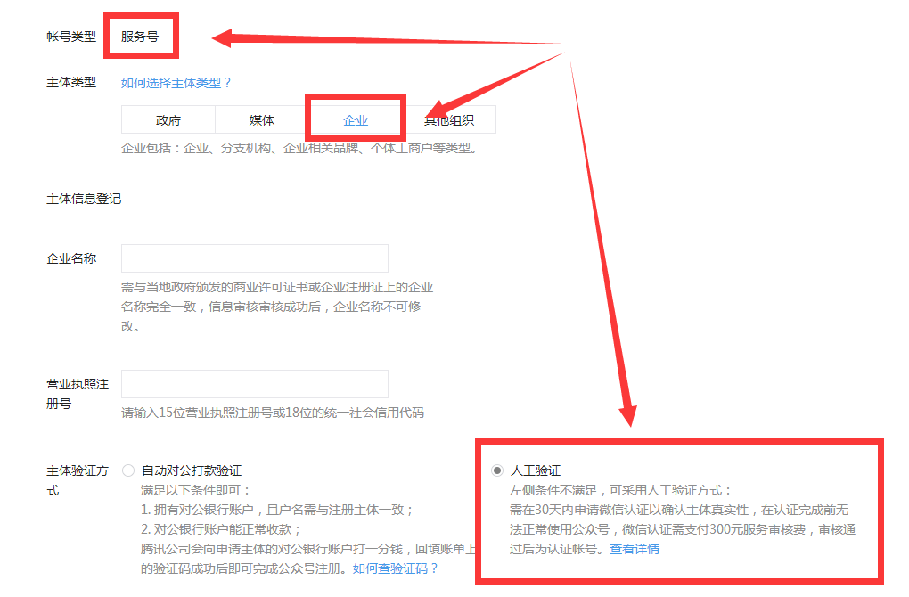 在第三步里面选择”服务号”。因为服务号里包含了微信支付功能。