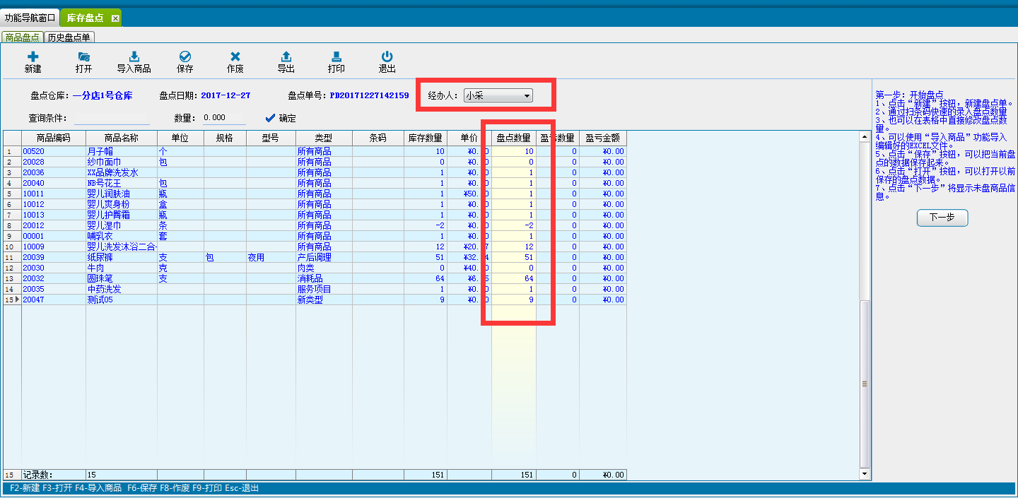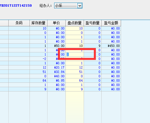 3、库存盘点首先选择经办人,然后修改正确的盘点数量