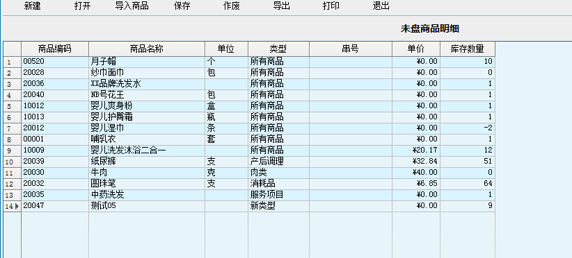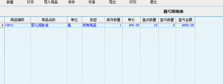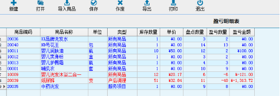 然后继续下一步,显示盈亏明细表,即进行盘点过的商品明细
