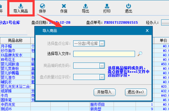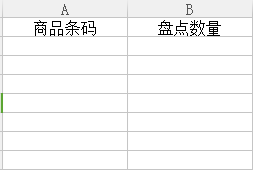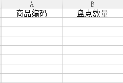 选择导入的文件,导入文件为Excel格式文件,对应字段为商品编码、盘点数量或者商品条码、盘点数量两种格式,参照下图两种格式任选其一进行设计表格。