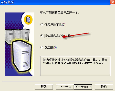 2、 选择安装数据库服务器。