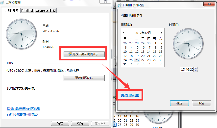 弹出窗口后点击“更改日期和时间”→“更改日历设置”