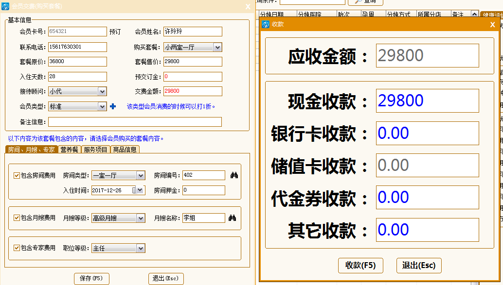 正式会员:已经办理入住的会员,登记产妇以及宝宝的各种情况之后,可正式购买套餐缴费并入住。可以把意向会员或者预订会员直接转为正式会员。