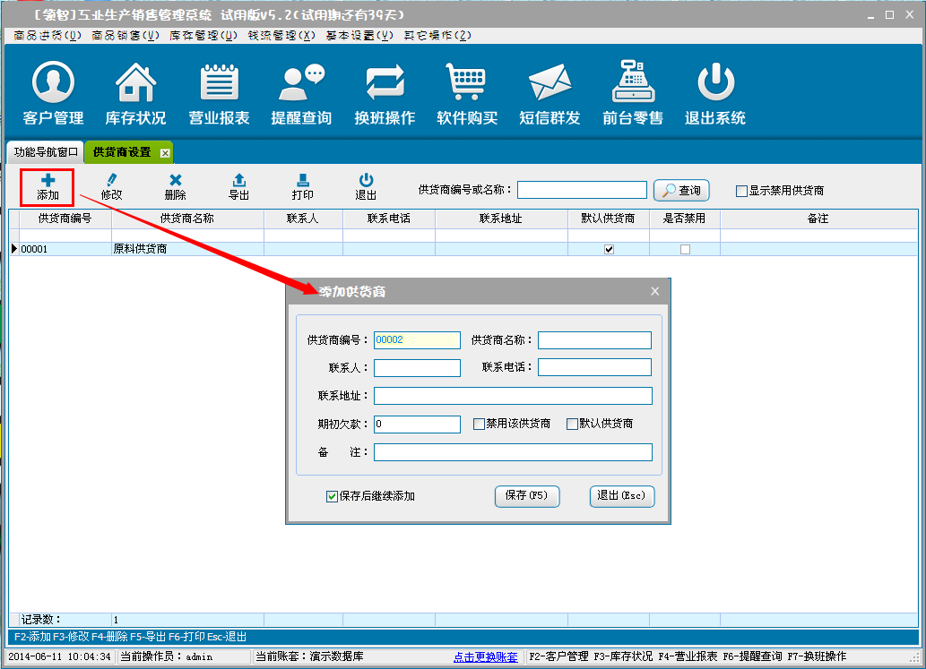 增加、删除、修改、查询商品进货的常用供货商基本信息。