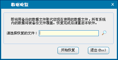 对软件备份数据进行恢复,恢复后软件数据将恢复历史数据,覆盖掉当前数据库,所以该操作请慎重使用并在执行操作前对最新的数据库进行备份操作!