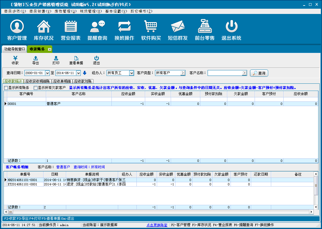 客户往来账务是对商品销售与客户来往账务的分析统计。应收款统计是对每个客户来往账务的汇总,应收实收款明细账是各个单据的账务统计,应收单明细是收款明细的统计,应收款对账是对商品销售的商品的应收款的核对确认。