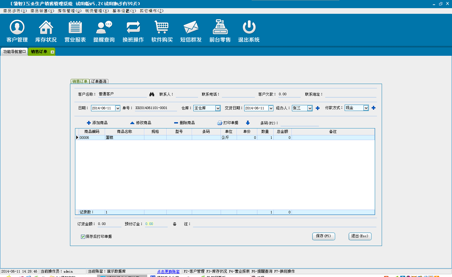 一、领智工业生产销售管理软件主界面