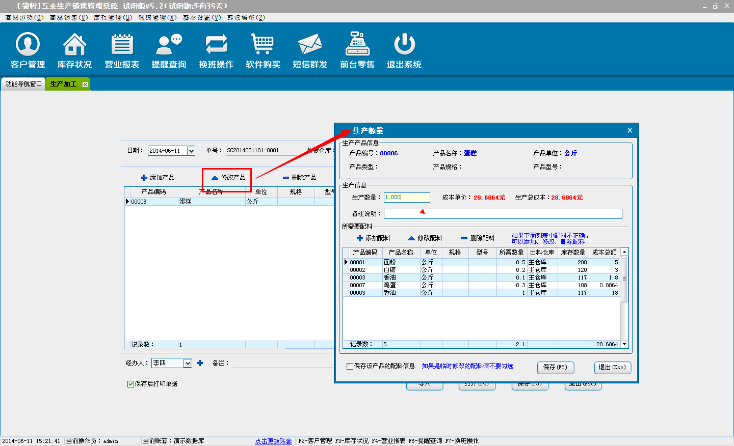 b:核对配料信息.可对添加的配料直接修改数量。