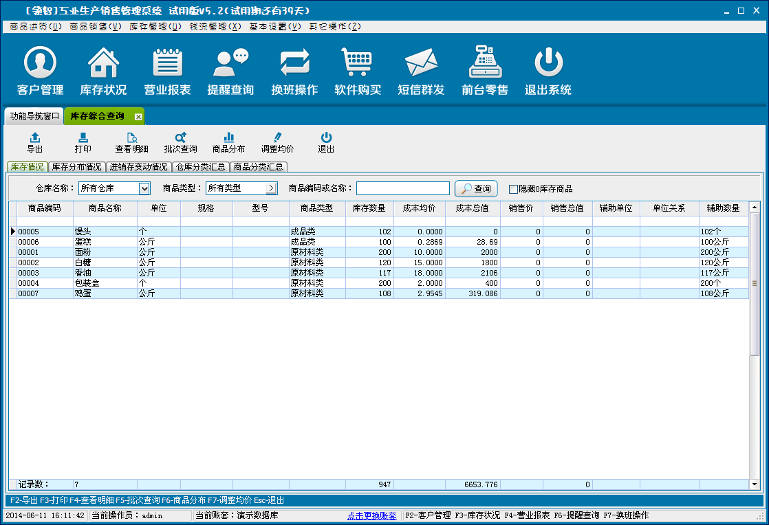 根据库存情况、库存分布情况、工业生产销售变动情况,库存分类汇总、商品分类汇总进行仓库的统计查询。可对库存进行批次查询可调整均价。