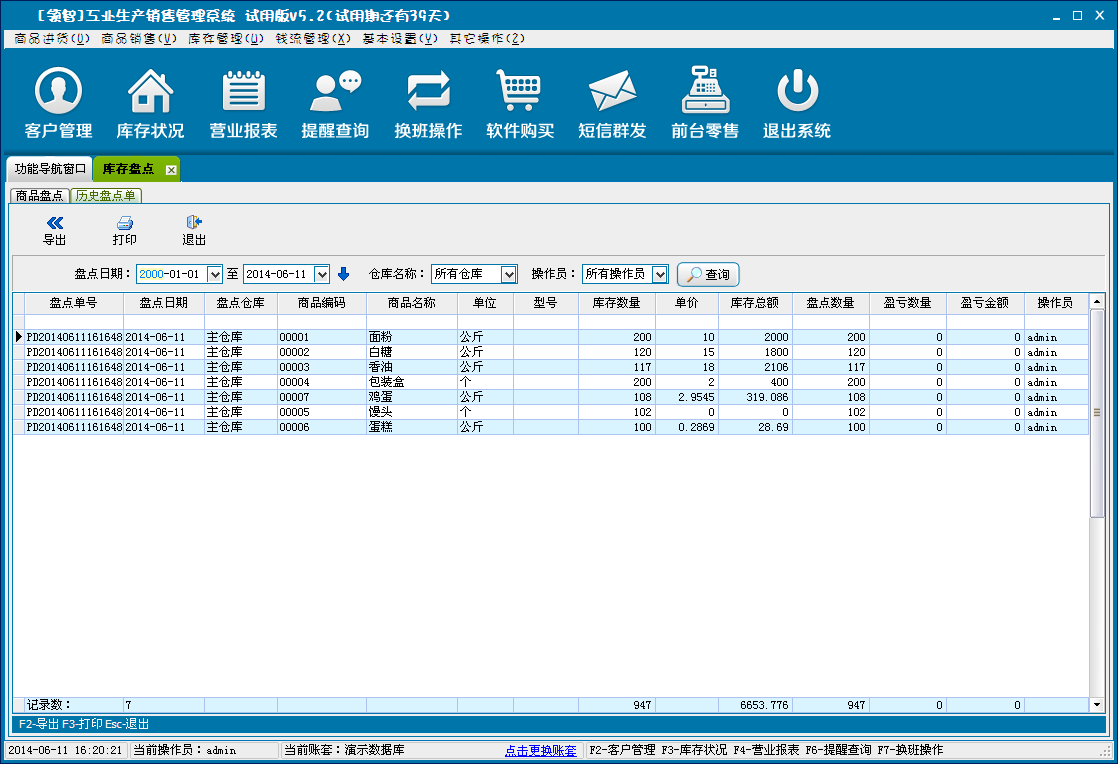 对各个仓库的商品库存进行盘点,修正库存数量,形成盈亏数据。