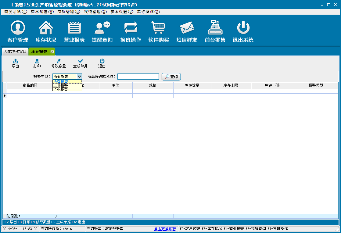 (5)库存报警
