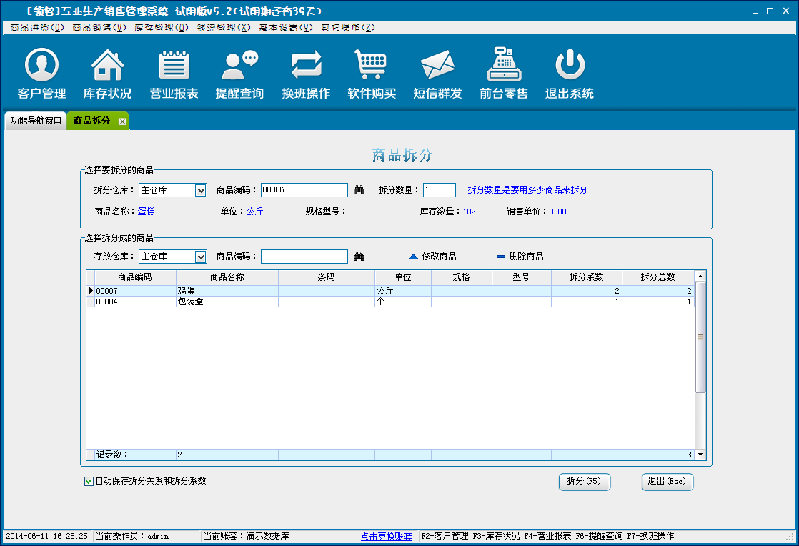 拆分商品是捆绑商品的相反过程,即将一个商品拆分为一个或多个商品。被拆分的商品的库存会对应减少,拆分成的商品的库存会对应增加。