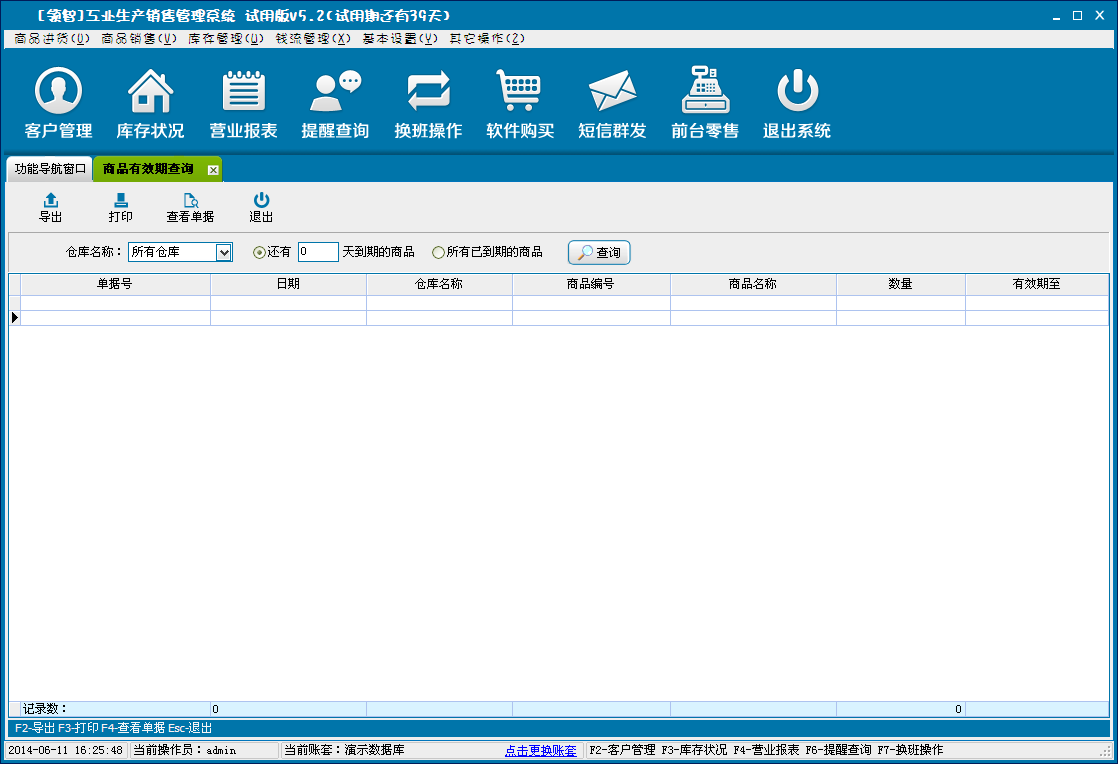 有效期查询是对仓库商品有效期的统计。该功能需要设置商品的有效日期,进行采购入库后才能够统计出信息。