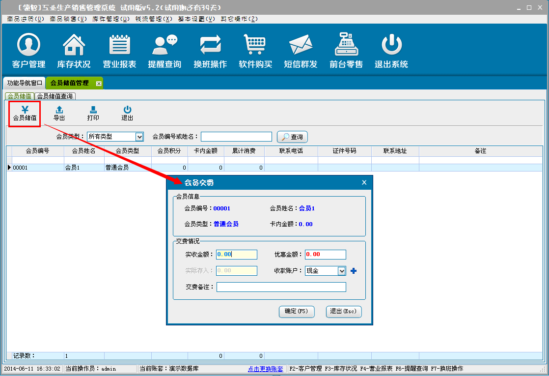 (2)会员储值管理