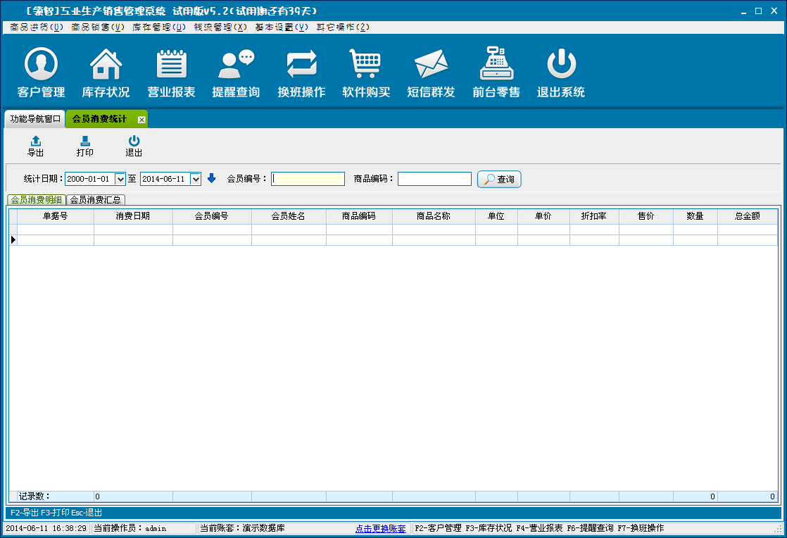 对会员消费的明细、汇总统计。在POS销售时候使用会员储值卡消费结账后,该功能才有效。