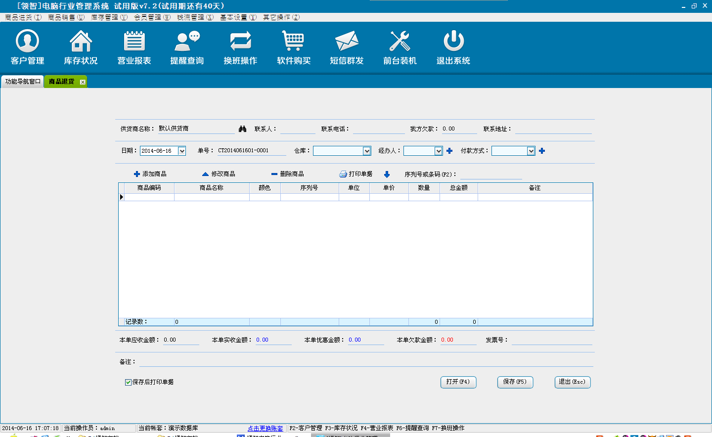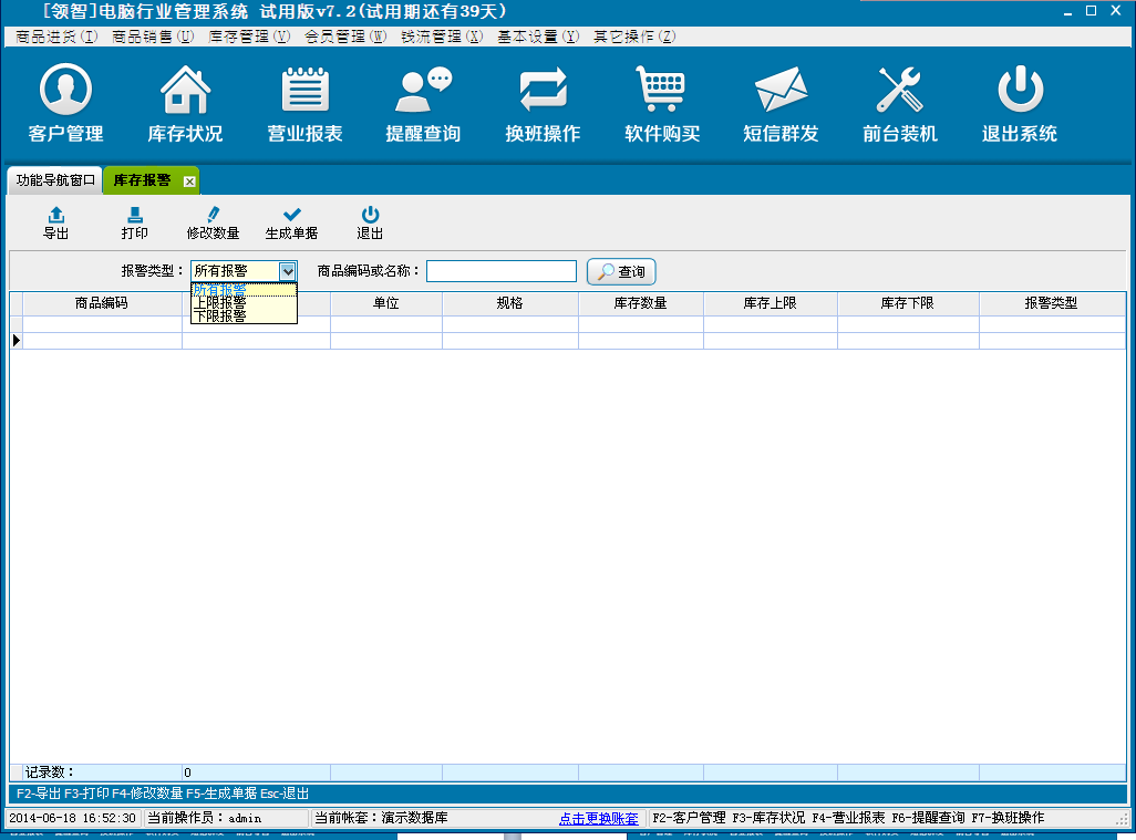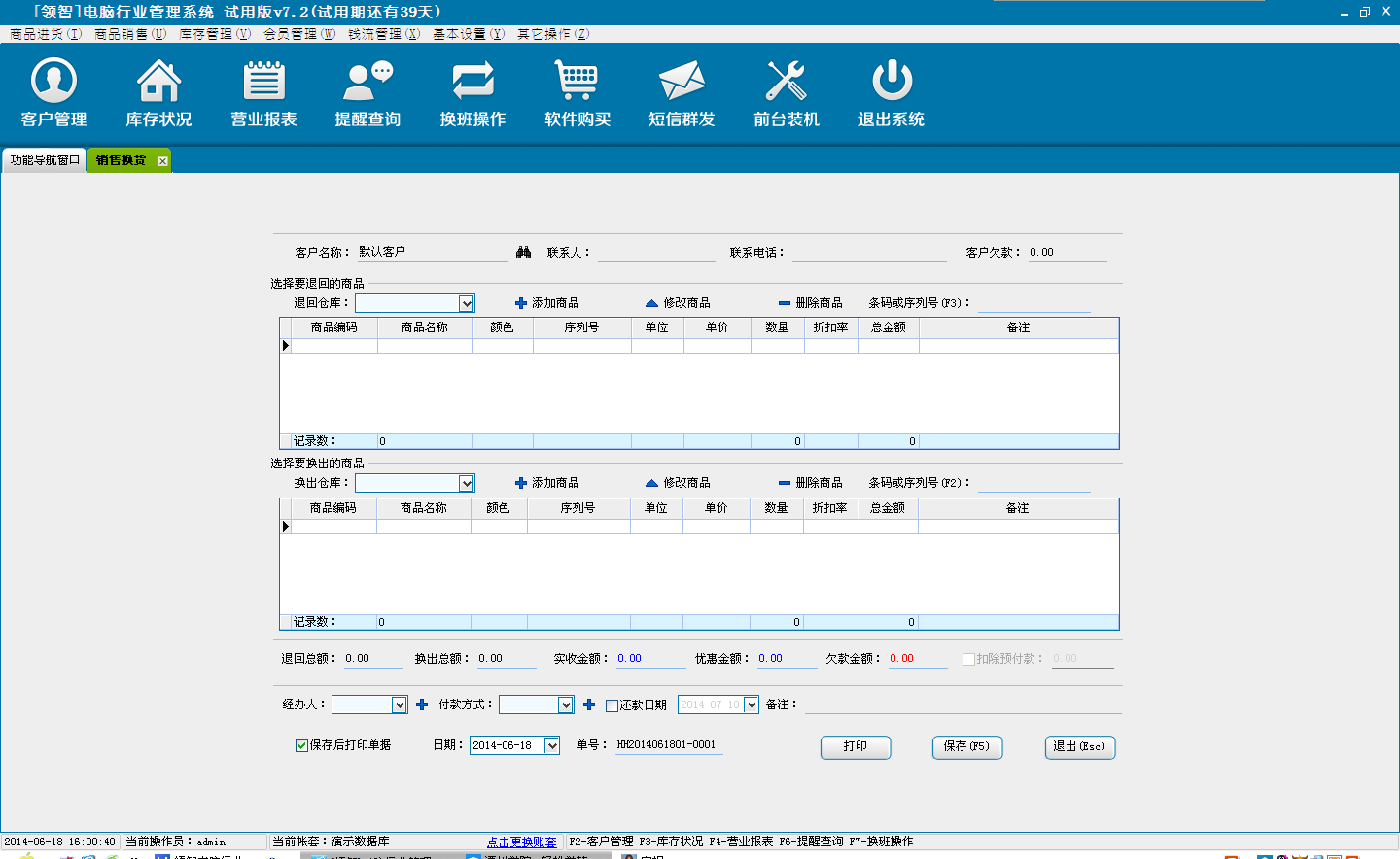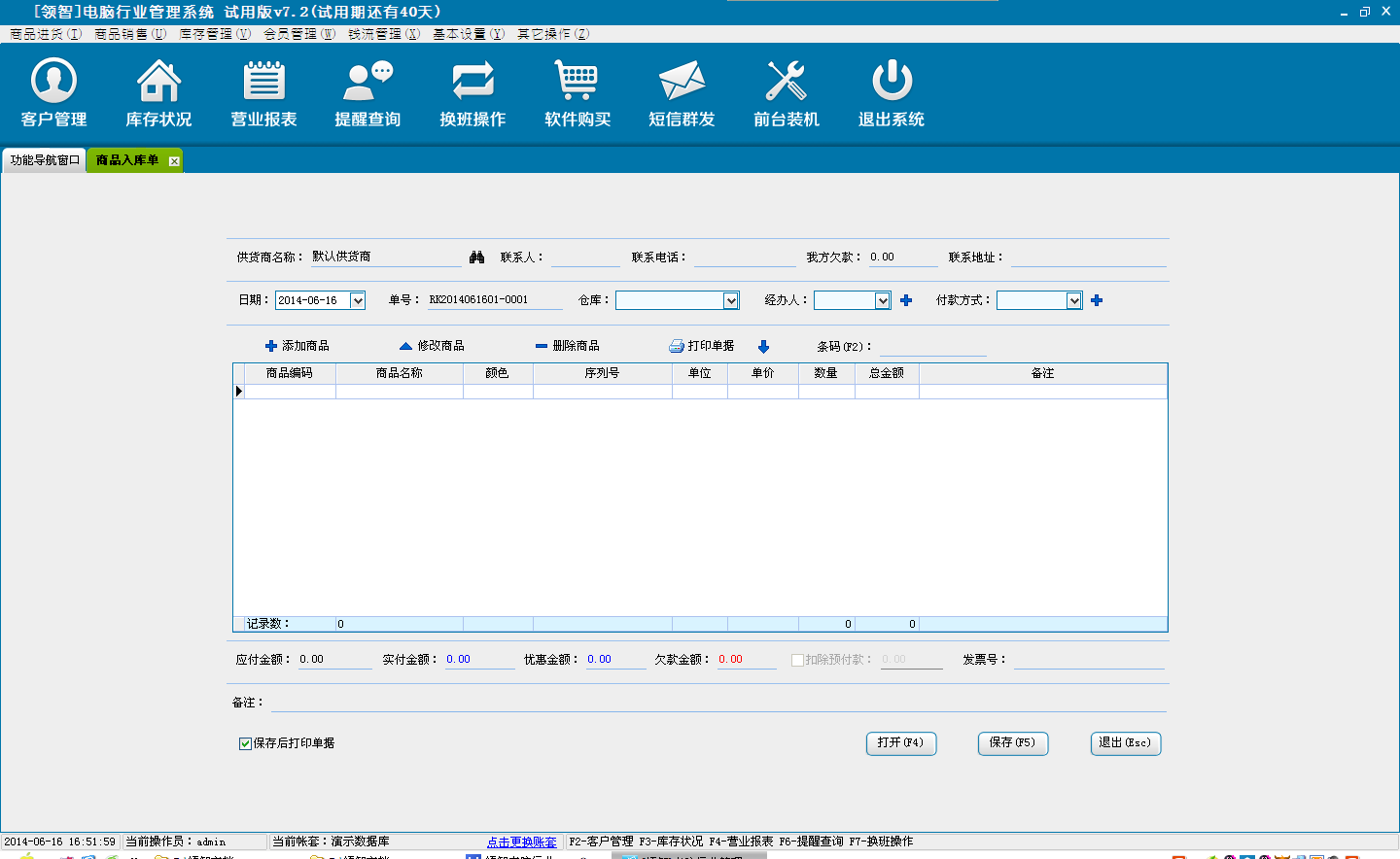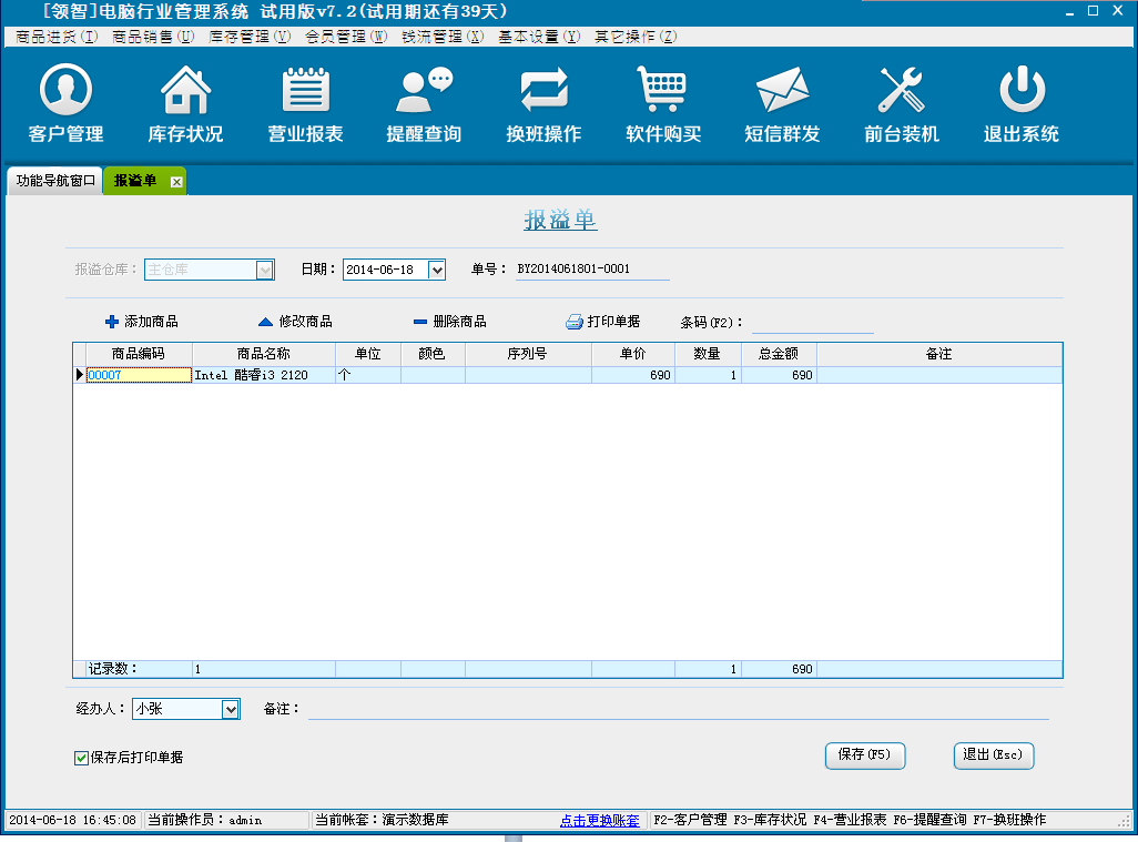 打开领智电脑行业POS销售程序,可以根据右侧的快捷键帮助列表执行各种操作。