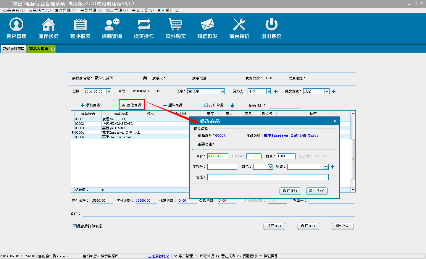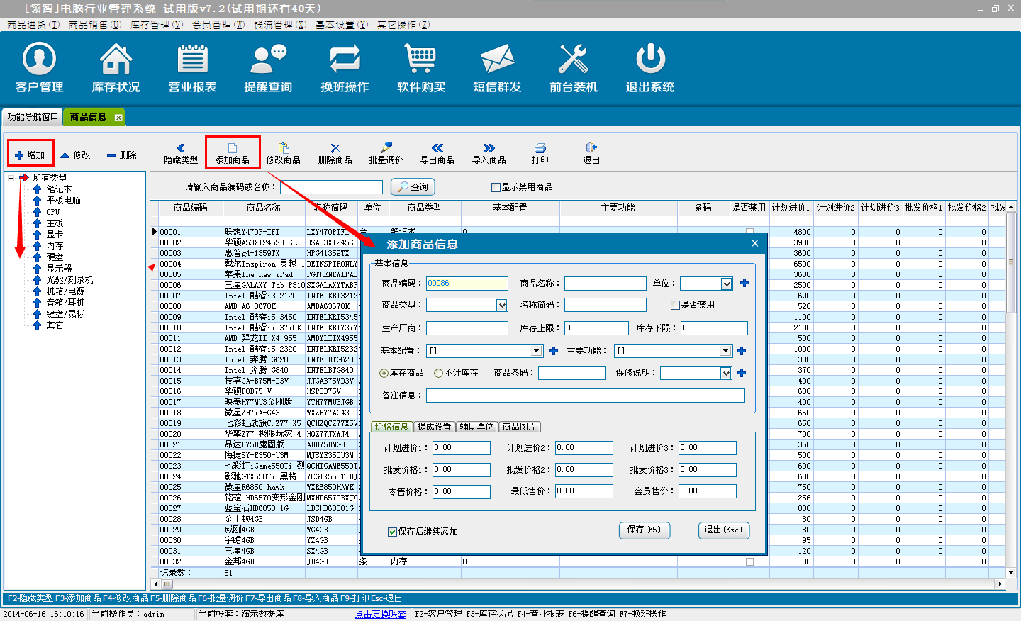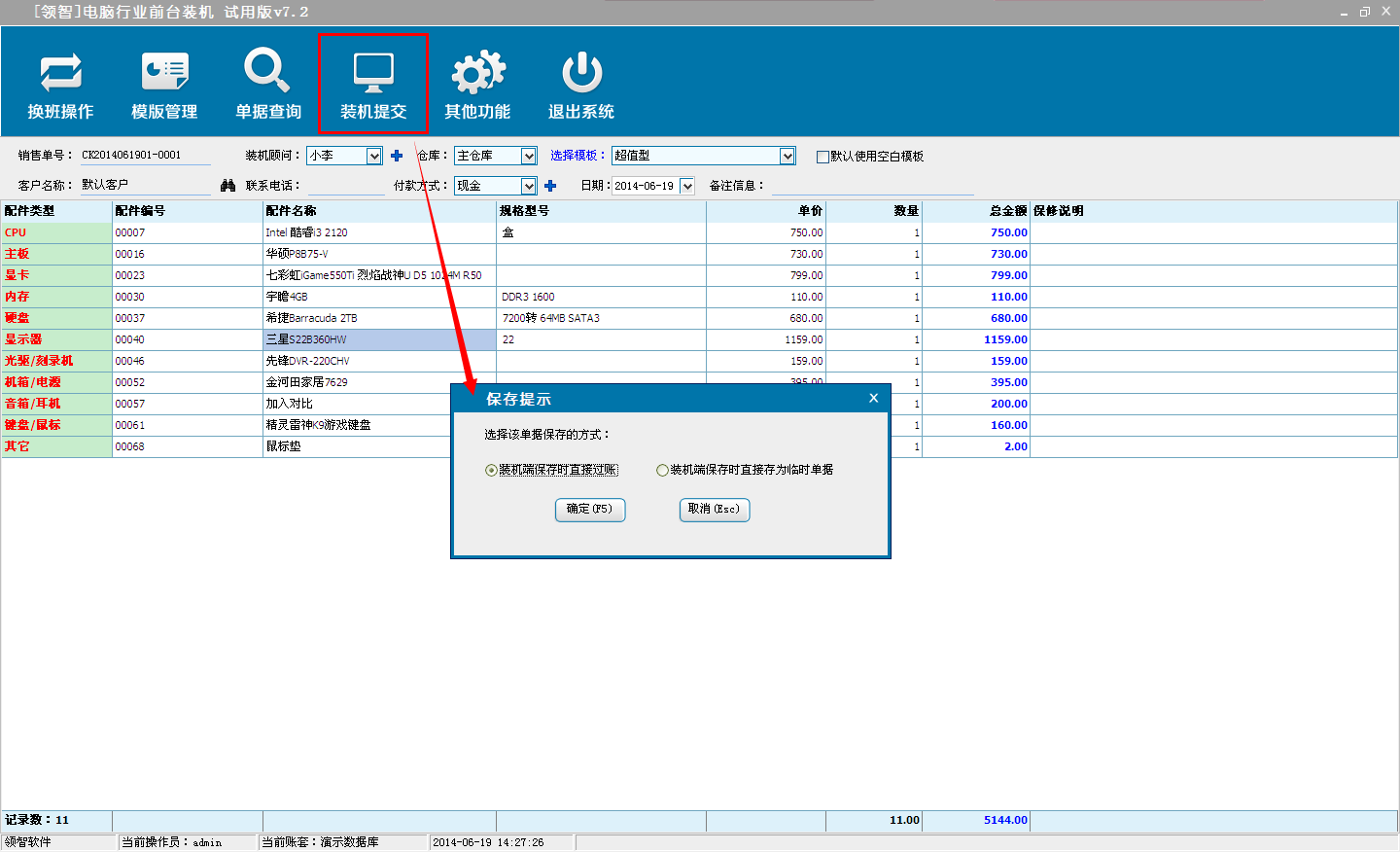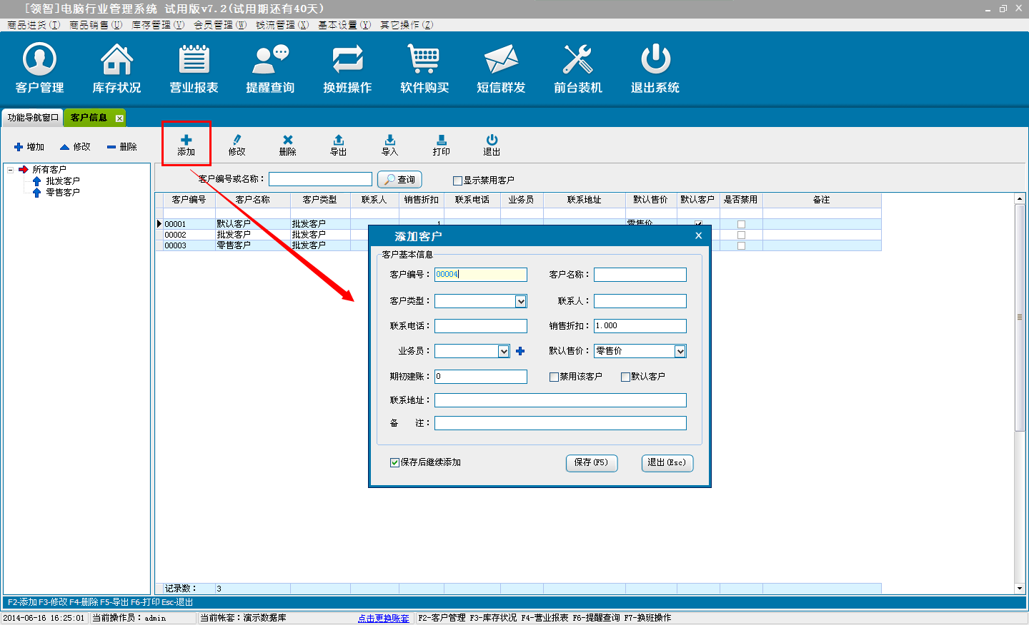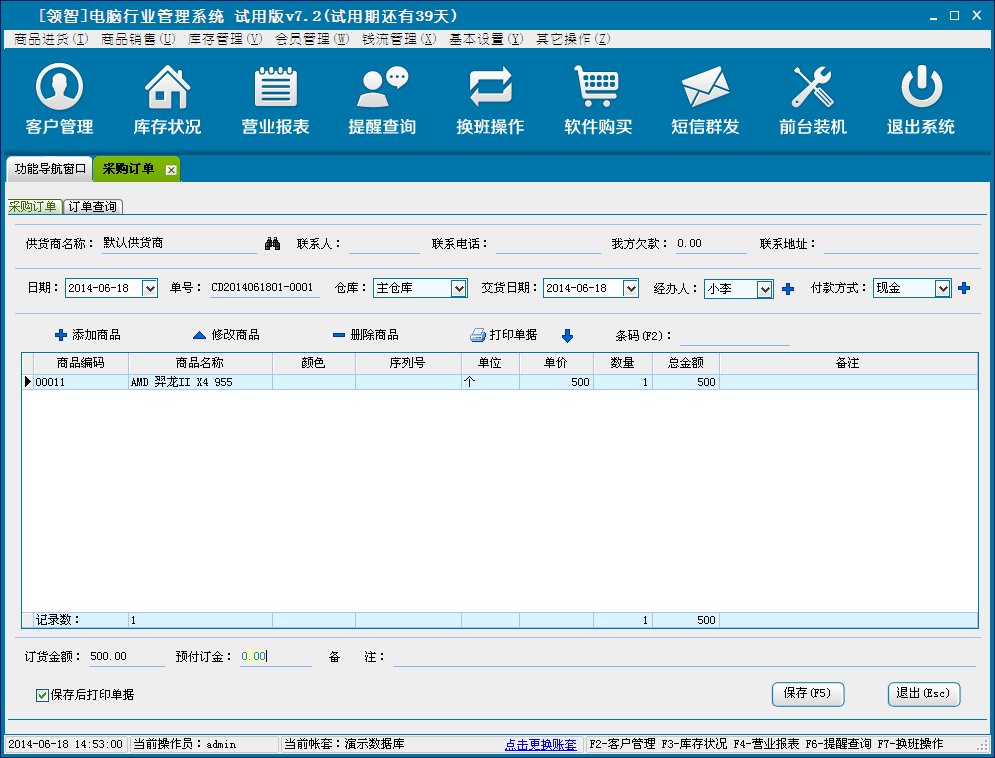 打开领智电脑行业POS销售程序,可以根据右侧的快捷键帮助列表执行各种操作。