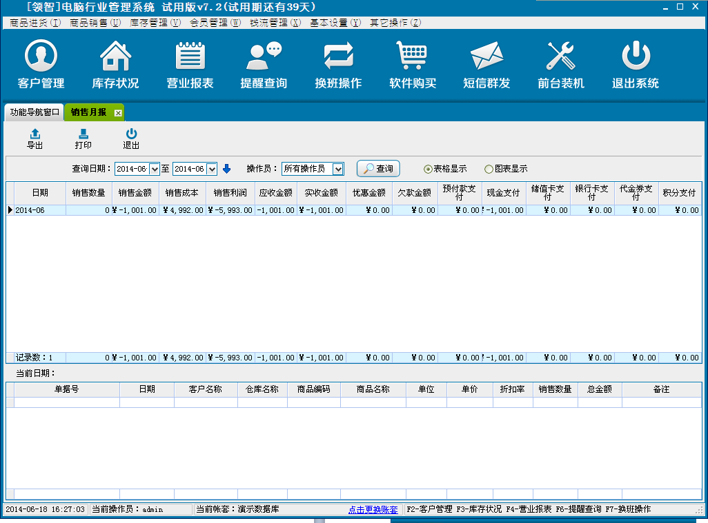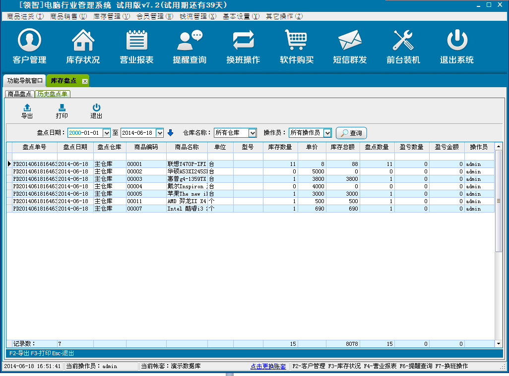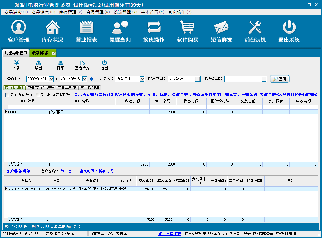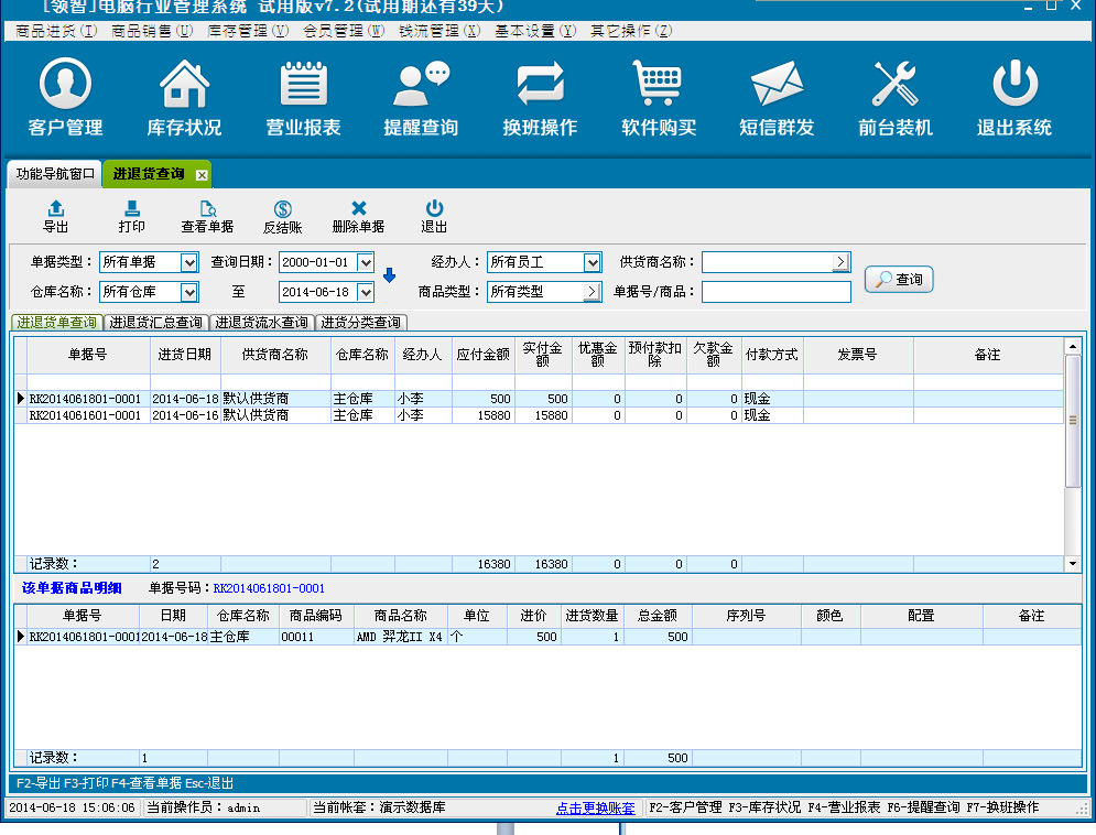一、领智电脑行业管理软件主界面