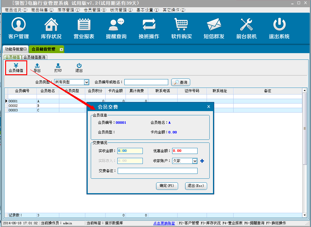 (2)会员储值管理