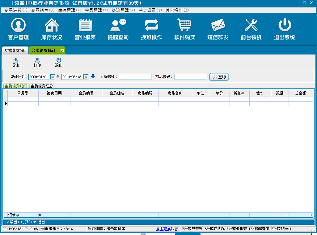 对会员消费的明细、汇总统计。在POS销售时候使用会员储值卡消费结账后,该功能才有效。