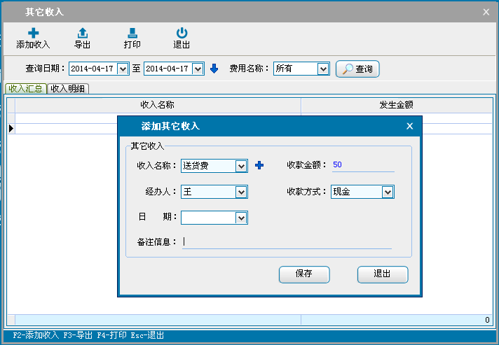 公司内部其它收入的录入和统计。