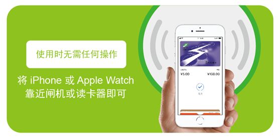 用Apple设备刷卡时,无须点亮设备、无须输入密码,无须中断浏览内容,和实体卡一样,只需将设备靠近地铁、公交的POS设备刷卡区域,就能秒闪通过,同样能享受换乘优惠等政策。