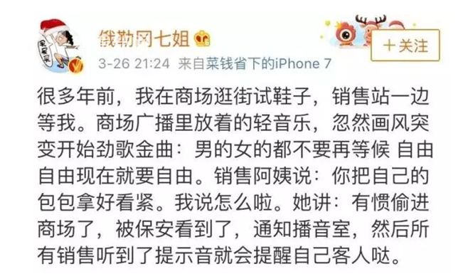 根据网友们的爆料,各地商场的提示音乐都是“独家订制”,各不相同。而且,用切换特定歌曲提示小偷“来访”,已经是商场行业内不成文的“潜规则”。