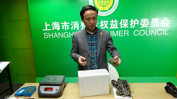 2017年网购大闸蟹券消费体察,消保委工作人员为样品称重。 本文图片均为上海市消保委秘书处 供图
