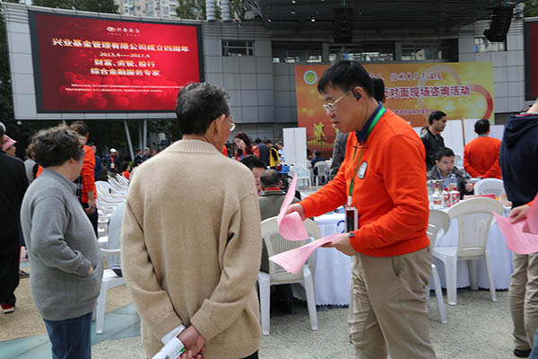 2017年重阳节当天,上海市消保委工作人员现场提醒老人警惕保健品营销陷阱。